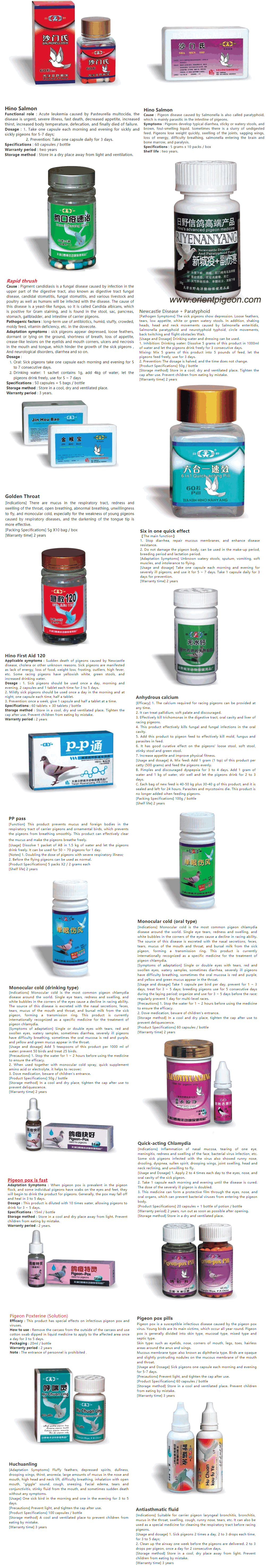 鸽子治疗药物系列之一