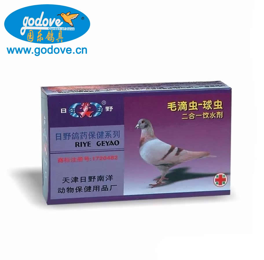 【功能主治】本品经过精心研究、科学配方、双效合一,是全面治疗信鸽毛滴虫、六鞭虫及球虫等混合感染的首选药物。最适合治疗毛滴虫--球虫混合感染症。繁殖期种鸽及哺育期幼鸽均可使用。本品无副作用,对比赛竞翔体能无影响。